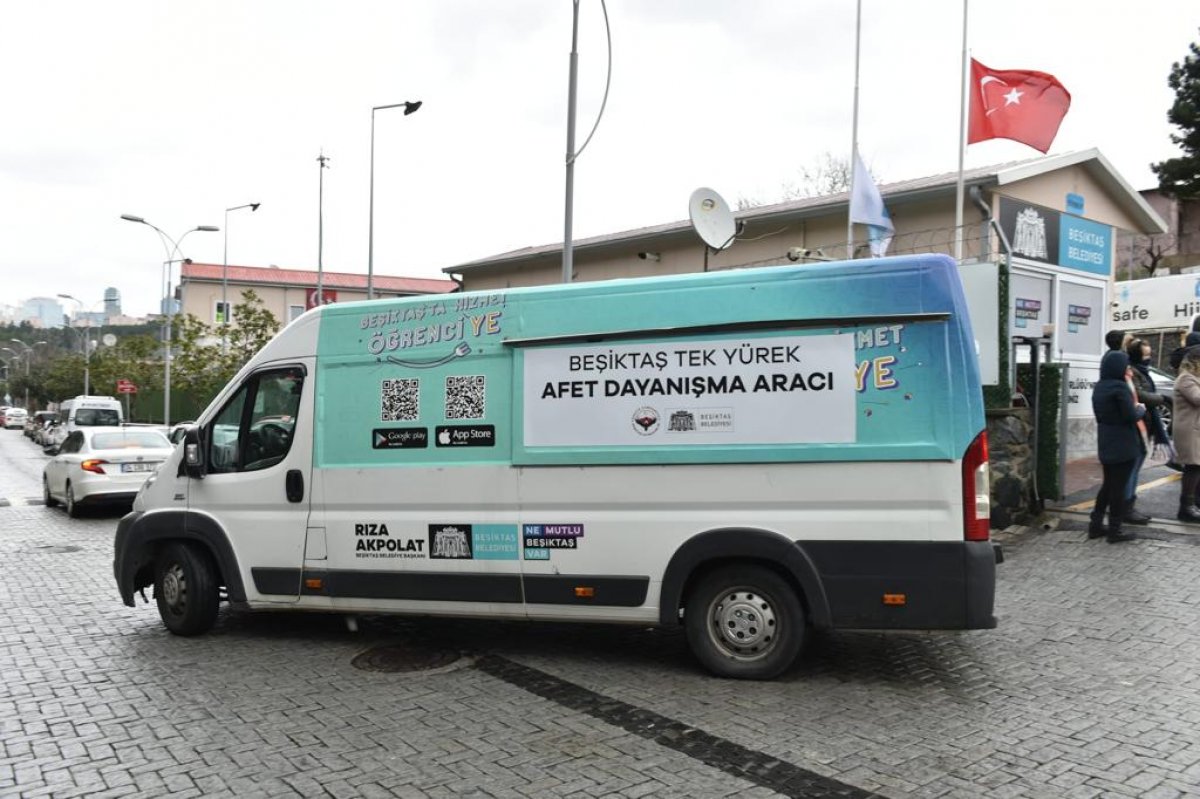 Beşiktaş Belediyesi’ne ait Karanfilköy Garajı’ndan yola çıkan Öğrenci’YE aracıyla depremzedelerin çay, kahve, su ve hazır gıda, “Sokak Hayvanları Ambulansı” MOBİVET ile de yaralı kurtulan can dostlarımızın tedavi ihtiyaçları karşılanacak ve kilolarca mama desteği sağlanacak