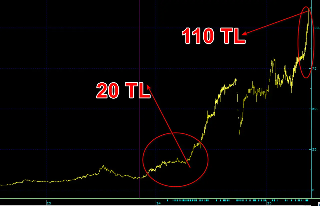 Bugün yüzde 10 yükselen senet, bu ay yüzde 40 son bir yılda ise yüzde 330 prim yaptı.