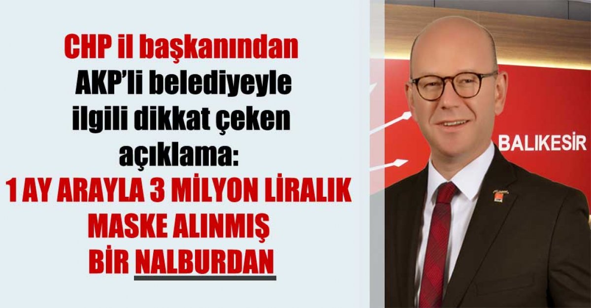 CHP il başkanından AKP'li belediyeyle ilgili dikkat çeken açıklama: 1 ay arayla 3 milyon liralık maske alınmış bir nalburdan