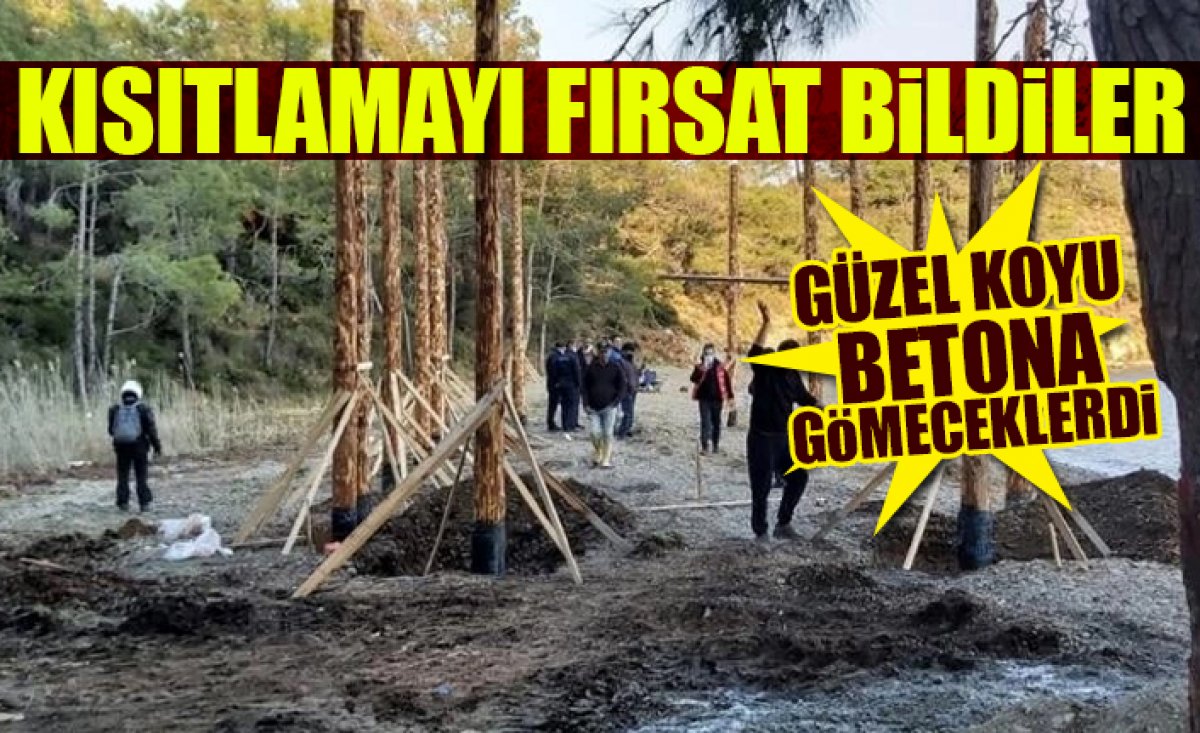 Fethiye'nin Göcek Mahallesi, İnceburun Koyu'nda, bugün sahile iş makineleri ile kazık çakıp, beton dökerek beach club inşaatı yapıldığını fark eden çevreciler, duruma müdahale etti.