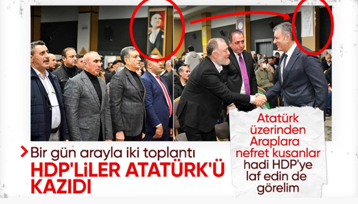 Esenyurt Belediyesi'nde düzenlenen Sarıkamış şehitlerini anma programında görülen Atatürk posterinin, aynı salonda düzenlenen DEM Parti kongresinde yerinde olmaması bir kez daha CHP'nin 'değerler' konusundaki ikiyüzlülüğünü ortaya koydu.