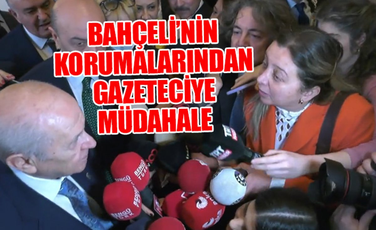 Bugün gerçekleşen MHP grup toplantısı bitiminde gazeteciler Meclis kulisinde Devlet Bahçeli'ye soru sormak istedi. MHP lideri, gazeteci Yıldız Yazıcıoğlu'nun Sinan Ateş cinayetini sorması üzerine 'İşine bak' yanıtını verdi. Bahçeli'nin yanıtının ardından korumaların Yazıcıoğlu'na müdahalede bulunduğu görüldü.