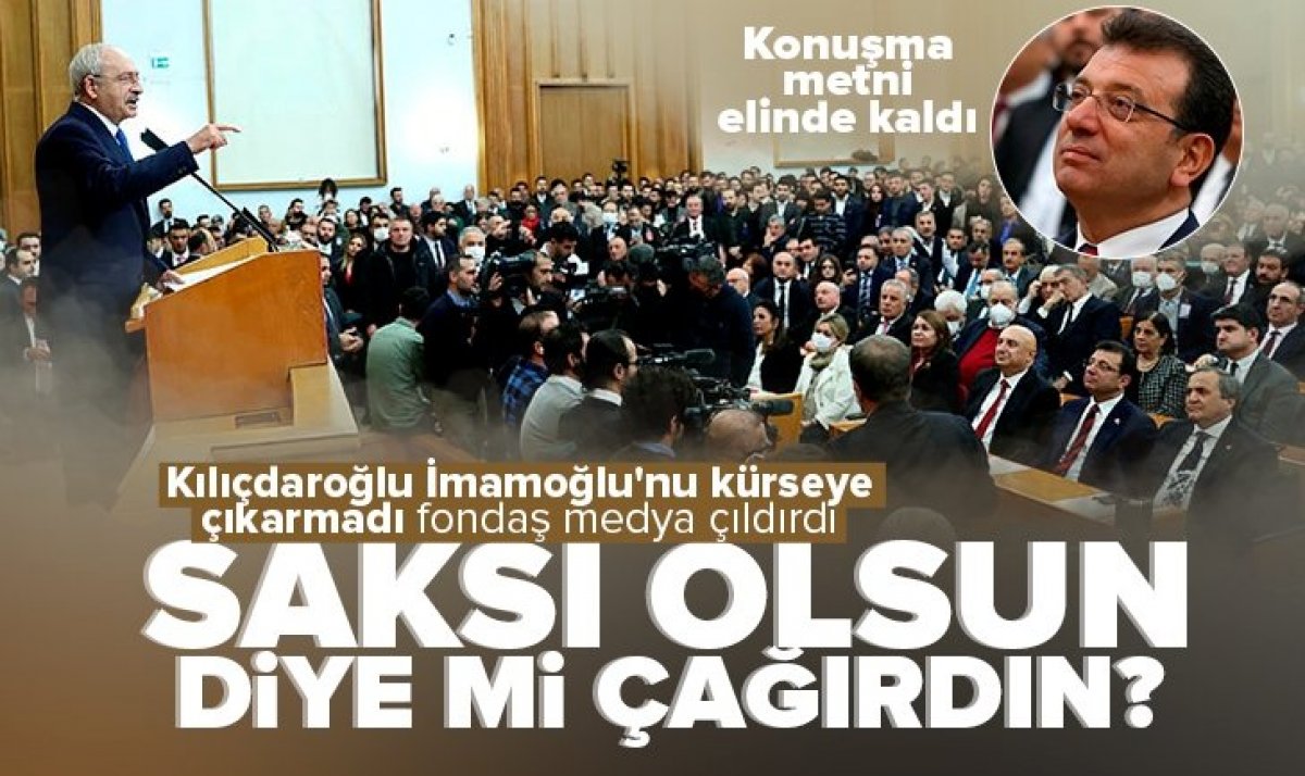 Saraçhane şovu sonrası Genel Başkanı Kemal Kılıçdaroğlu tarafından Ankara'da "hizaya çekilen" Ekrem İmamoğlu, bugünkü grup toplantısındaki yerini aldı. İmamoğlu ile birlikte salona giren Kılıçdaroğlu deyim yerindeyse adaylığını ilan eden ifadeler kullandı ,"Herkes Bay Kemal'i dinlesin." dedi. İmamoğlu'nun fonladığı Oda TV'nin sahibi Gazeteci Soner Yalçın, bu gelişme sonrası dikkat çeken ifadeler kullandı. Yalçın, "Kılıçdaroğlu, siyasi yasak getirmek istenen İmamoğlu'nu neden kürsüye davet etmedi? İstanbul'dan saksı olması için mi çağırdı?" dedi..