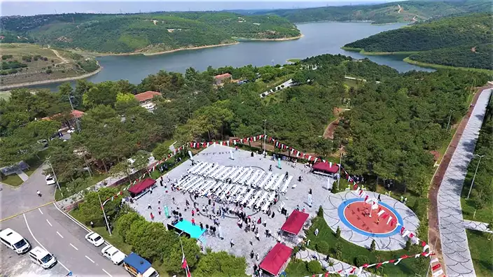 “Yapımı iki sene sürdü. Burası Gaziosmanpaşa’nın sınırında, İstanbul’un merkezinde bir mesire alanı olarak kullanacağımız, içinde istirahat yerleri, piknik alanları, seyir terasları, etkinlik alanları ve hizmet mekanları bulunan, dinlenme tesisi olarak dizayn ettiğimiz bir mesire alanı. Halkımıza açık hizmet verecek. Vatandaşın talebi doğrultusunda 24 saat hizmet verebilecek şekilde dizayn edildi. Gaziosmanpaşa’ya denizi, gölü getiren bir nokta.”