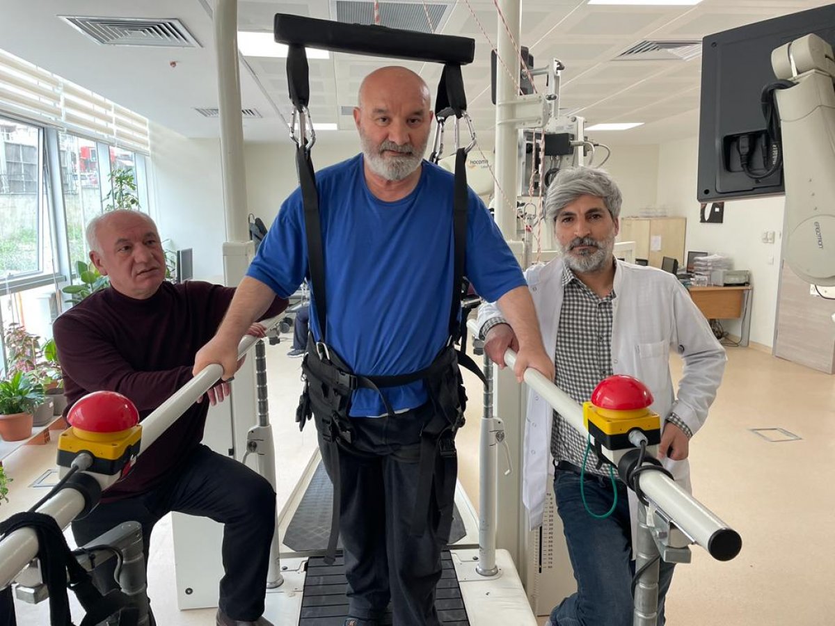 Burada Doç.Dr. Nazlı Derya Buğdaycı gözetimi ve önderliğinde başarılı bir fizik tedavi süreci geçiren usta gazeteci üç buçuk yılın ardından desteksiz yürümeyi başardı.